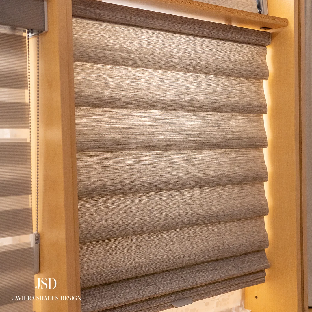El balance ideal entre la calidez de la tela y la funcionalidad del roller.